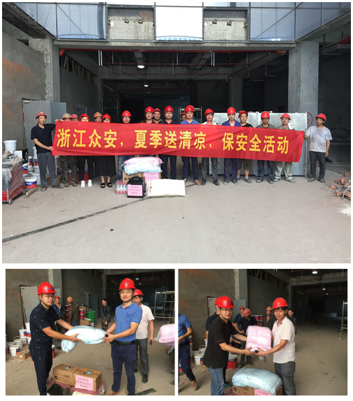 近來,杭州市持續(xù)高溫,室外氣溫一直徘徊在40度上下,地面溫度達(dá)到50度左右,這無疑是對建筑工地上一線工人的嚴(yán)峻“烤驗(yàn)”。7月26日下午,集團(tuán)華總、江總等與集團(tuán)工會余主席等一行人深入項(xiàng)目建設(shè)工地現(xiàn)場,代表眾安建設(shè)集團(tuán)向堅(jiān)守崗位的一線工作人員表示慰問,為建筑工人發(fā)放了防暑降溫藥品、清涼油、洗衣粉、毛巾等物品。