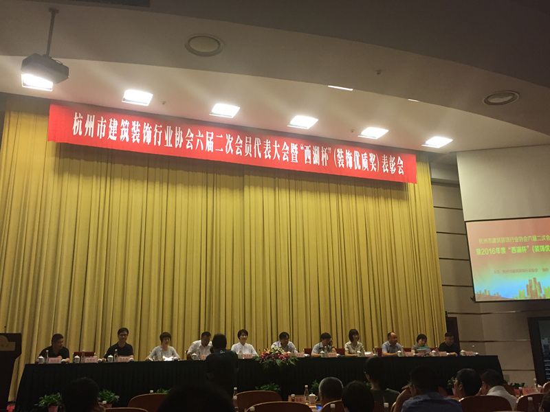8月8日,杭州市建筑裝飾行業協會六屆二次會員代表大會暨“西湖杯”(裝飾優質獎)表彰會在之江飯店報告廳順利召開。杭州市城鄉建設委員會黨委委員、副主任裘新谷,浙江省建筑裝飾行業協會會長惲稚榮,副會長兼秘書長賈華琴、杭州市社會組織管理局副調研員曾欣華、浙江省建設材料管理協會秘書長陳平、副秘書長王水清等出席會議并講話,市裝協會長、浙江省武林建筑裝飾集團有限公司董事長、黨委書記于利生主持會議,協會會員代表、獲獎企業代表、杭州市各區、縣(市)建筑(裝飾)行業協會會長秘書長293人參加會議。