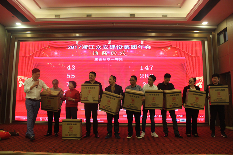 34日下午17點,浙江眾安建設集團有限公司2017年年會暨十五周年慶典,在新開元大酒店九赫廳隆重舉行,晚會上社會各界領導以及集團分公司代表、項目經理、總部全體員工歡聚一堂,共襄盛會。宴會開始前,首先由董事長、副董事長開幕致辭,隨后,公司領導為優秀項目經理,優秀員工等獲獎員工頒獎,晚會期間還設置了許多小游戲及抽獎環節,隨著幸運獎、三等獎、二等獎、一等獎的抽取,年會氣氛逐漸達到高潮,掌聲、歡呼聲一直在會場上蕩漾。