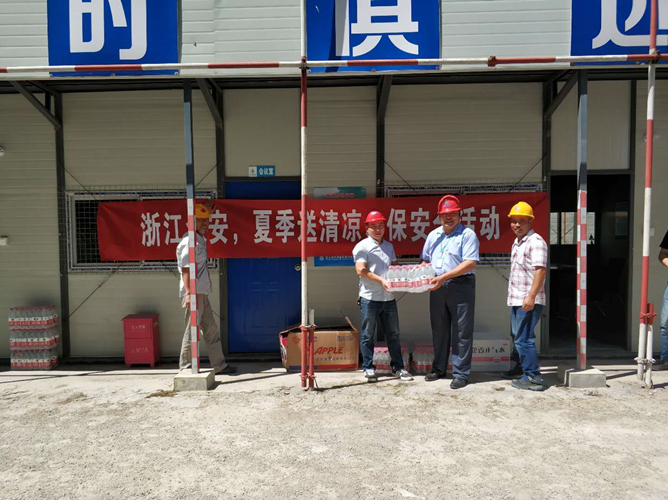 近來,杭州市持續(xù)高溫,室外氣溫一直徘徊在40度上下,這無疑是對建筑工地上一線工人的嚴(yán)峻“烤驗(yàn)”。自720日開始,集團(tuán)董事徐總、質(zhì)安科丁總等一行人深入項(xiàng)目建設(shè)工地現(xiàn)場,先后來到公司在溫州及文成紹興、嘉興、淳安、杭州等項(xiàng)目部,代表眾安建設(shè)集團(tuán)向堅(jiān)守崗位的一線工作人員表示慰問,為建筑工人發(fā)放了防暑降溫藥品、清涼油、洗衣粉、毛巾等物品。