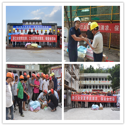 自8月開始,集團各級領導帶著滿滿的問候,深入項目建設工地現場,先后前往貴州、河北、江西、溫州、嘉興、杭州等各個項目部,代表眾安建設集團向堅守崗位的一線工作人員表示慰問,為建筑工人發放防暑降溫藥品、清涼油、毛巾等物品。