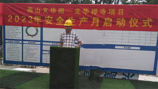 2023年6月是第22個全國“安全生產月”,為認真落實響應《集團2023 年“安全生產月”活動方案》相關要求,圍繞“人人講安全、個個會應急”活動主題,全面貫徹落實黨的二十大精神和習近平總書記關于安全生產工作的重要批示,集團于5月31日在杭州千島湖龍華禪寺項目正式啟動“安全生產月”系列活動。